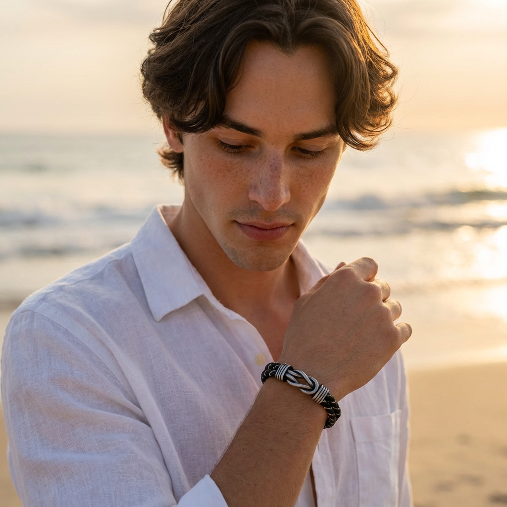 Men’s Infinity Knot Leather Bracelet with Personalized Engraving. Crafted from premium leather and durable stainless steel, this custom bracelet for men features a hidden engraved message inside the clasp. A meaningful gift for husband, boyfriend, dad, or son perfect for anniversaries, birthdays, and special occasions. Infinity symbol design representing eternal love and connection.